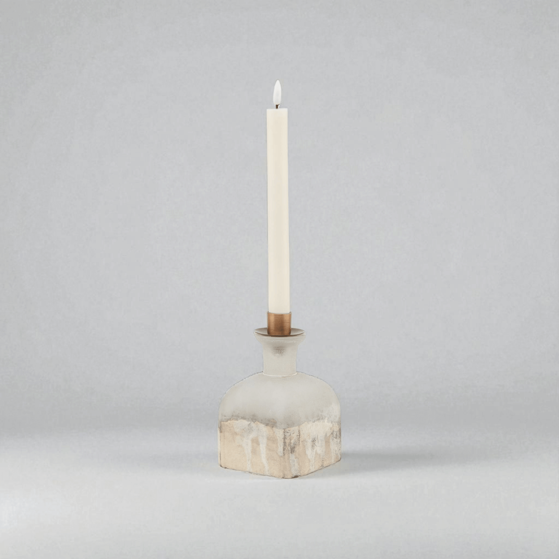 Burnished Dipped and Aged Brass Large Candle Holder Vase